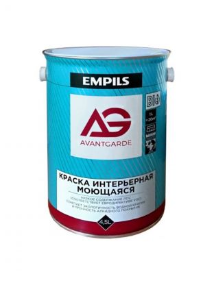 Краска водно-дисперсионная, Empils, AvantGarde, алкидная, интерьерная, моющаяся, матовая, белая, 4.5 л, 6.2 кг