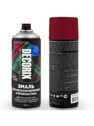 Эмаль аэрозольная, Decorix, 0137-3005 DX, для металлочерепицы и профнастила, акриловая, глянцевая, винно-красная, RAL 3005, 520 мл