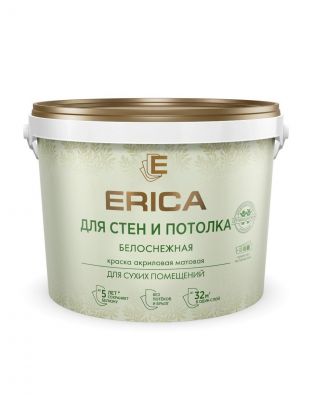 Краска Erica - идеальный выбор для окрашивания стен и потолков внутри сухих помещений. Она разработана для нанесения на минеральные, деревянные, бумажные, бетонные, кирпичные, гипсокартонные, ДВП и ДСП поверхности.