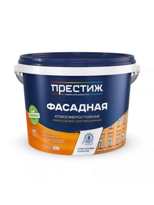 Краска водно-дисперсионная, Престиж, F20 ВД-АК-101, акриловая, фасадная, влагостойкая, матовая, супербелая, 2.7 кг