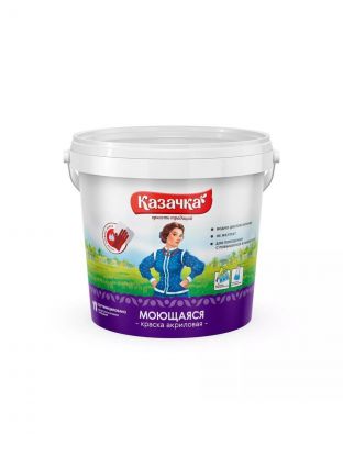 Краска водно-дисперсионная, Казачка, W-4, акриловая, универсальная, моющаяся, влагостойкая, матовая, 1.4 кг