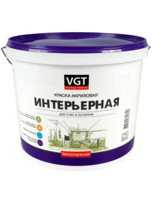Краска водно-дисперсионная, VGT, акриловая, интерьерная, влагостойкая, матовая, белоснежная, 7 кг