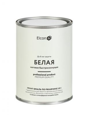 Грунт-эмаль Elcon, 3в1 матовая, по ржавчине, смоляная, белая, RAL 9003, 0.8 кг