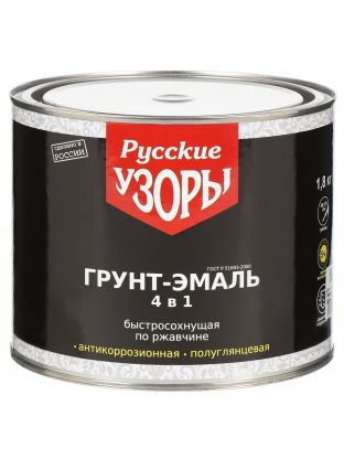 Грунт-эмаль Русские узоры, 4в1, по ржавчине, быстросохнущая, алкидная, полуглянцевая, белая, 1.8 кг