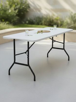 Стол подходит для использования на улице, в беседке, на террасе и даже в доме, если нужен дополнительный обеденный или рабочий стол. Благодаря универсальному размеру 180x68 см за ним удобно разместятся 6–8 человек. Вопросы по уходу и хранению решаются просто: стол легко протереть влажной салфеткой, а в сложенном виде он занимает минимум места.