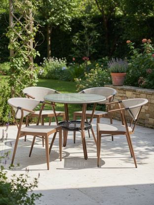 Садовая мебель Марьяна: круглый стол 154 см и 4 стула до 100 кг — стильное решение для дачи, террасы или кафе. Легко складывается, не боится влаги и солнца.