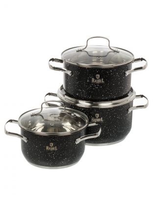 Набор посуды нержавеющая сталь, 6 предметов, 2.6, 3.6, 4.7 л, индукция, RasheL, R-20304v