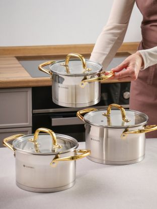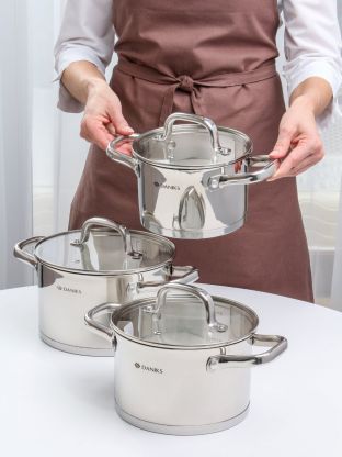 Набор посуды нержавеющая сталь, 6 предметов, кастрюли 2.1, 2.9, 3.9 л, индукция, Daniks, Рейн, GS-01229-6PC