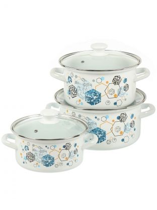 Набор посуды эмалированная сталь, 3 предмета, кастрюли 2, 3, 4 л, индукция, СтальЭмаль, Солнечный день, 6KB021M, белый