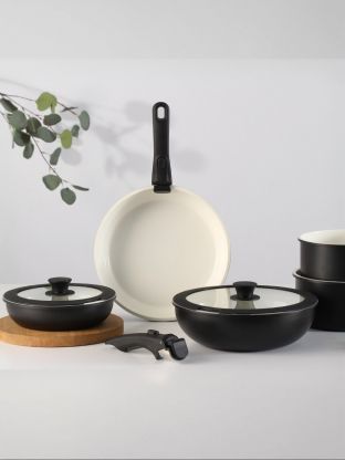 Набор посуды алюминий, антипригарное покрытие, 9 предметов, индукция, Daniks, GS-11078-9PC-black
