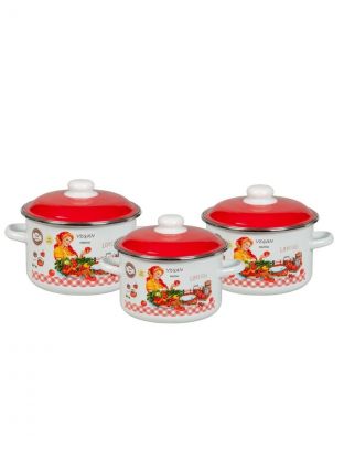 Набор посуды эмалированная сталь, 3 предмета, кастрюли 2,3,4 л, индукция, СтальЭмаль, Хозяюшка, 6KB021M