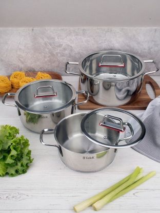 Набор посуды нержавеющая сталь, 3 предмета, индукция, Taller, Лира, 11025