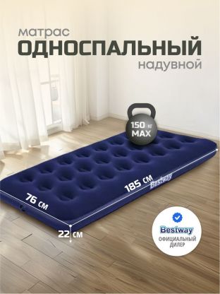 Матрас надувной Bestway, 185х76х22 см, 67000/010163BW, без насоса, флокированный, ортопедический, 150 кг
