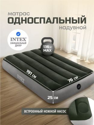 Матрас надувной Intex, 191х76х25 см, 64760, насос встроенный, ножной, 136 кг