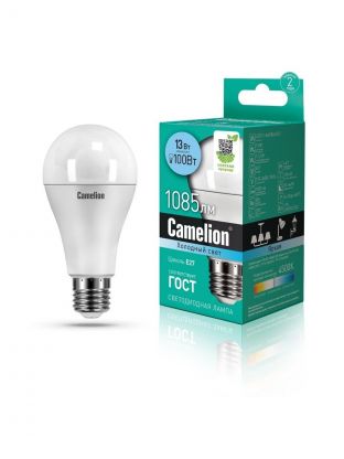 Лампа светодиодная E27, 13 Вт, 100 Вт, 220 В, груша, 4500 К, нейтральный белый свет, Camelion, 12046