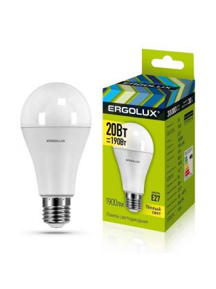 Лампа светодиодная E27, 20 Вт, 190 Вт, 220 В, груша, 3000 К, теплый белый свет, Ergolux, 13182