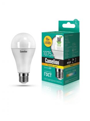 Лампа светодиодная E27, 13 Вт, 100 Вт, 220 В, груша, 3000 К, теплый белый свет, Camelion, 12045