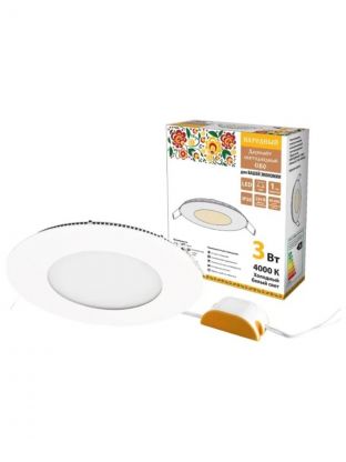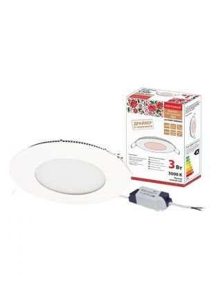 Светильник светодиодный, TDM Electric, Даунлайт народный СВО, 3 Вт, 3000 К, 180 Лм, IP20, 8.3х8.3х2.1 см, ультратонкий, белый, SQ0329-0093