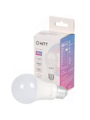 Лампа светодиодная E27, 30 Вт, 300 Вт, 230 В, груша, 6500 К, холодный белый свет, HiTT, HiTT-PL-A60, A60, 1010021