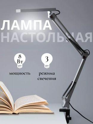 Да, гибкая конструкция и прочная прищепка позволяют закрепить лампу на любой поверхности, направить свет в нужную сторону и освободить место на столе.