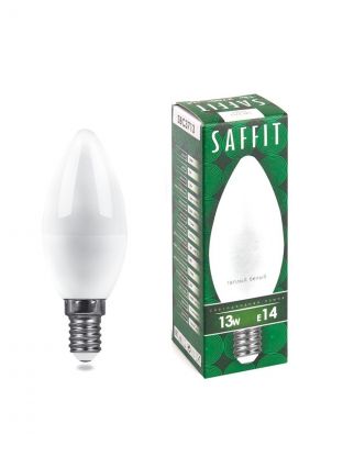 Лампа светодиодная E14, 13 Вт, 130 Вт, 230 В, свеча, 2700 К, теплый белый свет, Saffit, SBC3713, C37, 55163