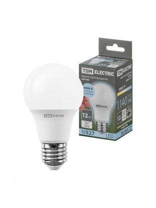 Лампа светодиодная E27, 12 Вт, 100 Вт, 230 В, груша, 4000 К, нейтральный белый свет, TDM Electric, А60