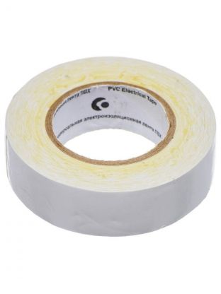 Изолента ПВХ, 19 мм, 150 мкм, белая, 20 м, индивидуальная упаковка, Bartex