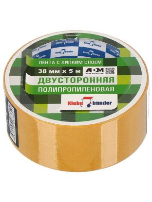 Клейкая лента 38 мм, двухсторонняя, основа полипропиленовая, 5 м, Klebebander, KPP305T