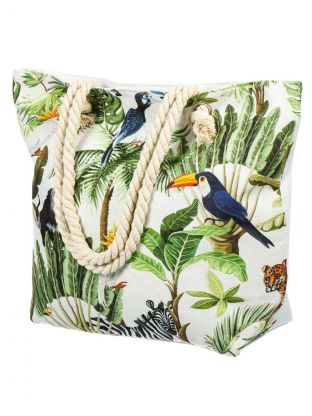 Стильная пляжная сумка с ярким принтом достаточно вместительная и выдерживает значительные нагрузки, благодаря прочной ткани. Размер изделия позволит взять на пляж все необходимое, чтобы отдых был комфортным.