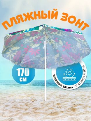 Пляжный зонт 170 см с наклоном и 8 металлическими спицами — идеальное решение для создания тени и комфорта на даче, в саду или на пляже. Благодаря прочному металлическому каркасу и износостойкому полиэстеру, зонт обеспечивает длительную эксплуатацию и защиту от солнца. Механизм наклона позволяет легко регулировать угол наклона, создавая оптимальное укрытие независимо от положения солнца. Легкий вес — всего 0,9 кг — делает транспортировку проста и удобна, а наличие чехла обеспечивает дополнительное удобство хранения и переноски. Яркий разноцветный дизайн добавит красок и уюта в любой летний отдых, гармонично впишется в атмосферу загородного участка или пляжа.