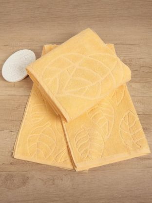 Полотенце банное 70х140 см, 100% хлопок, жаккард, плотность 450 г/м2 — комфорт для дома и дачи, стиль «Листья-2», цвет банан. Натуральность и долговечность по выгодной цене.