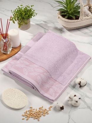 • Премиальная махровая текстура: 100% хлопок, жаккардовый бордюр, стильный фиолетовый оттенок