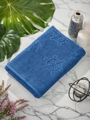 Полотенце пляжное 70х140 см, 375 г/м2, жаккард, Вышневолоцкий текстиль, Якоря, 632, сапфир, Россия, Ж1-70140.1141.375