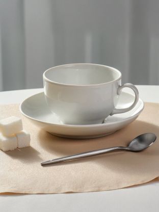 В наборе 3 предмета: чашка (керамика, 220 мл), блюдце (керамика, круглая форма), ложка. Все элементы выполнены из прочной керамики, предназначены для одного человека.
