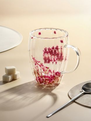 Кружка стекло, 350 мл, Оптик сухоцветы розовые, двойные стенки, Y4-9726