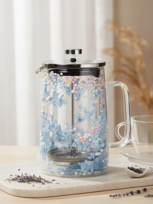 В отличие от металлических и пластиковых аналогов, стеклянный корпус не влияет на вкус и позволяет визуально контролировать процесс заваривания. Если вы ищете, чем отличается френч-пресс для кофе от чайника или капельной кофеварки, — главное преимущество здесь в универсальности: можно заваривать кофе, чай, травяные сборы и даже ягодные напитки. Декор «Сухоцветы» делает этот френч-пресс стильным акцентом в интерьере и отличным вариантом для подарка.