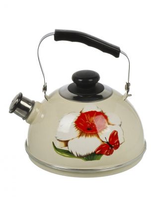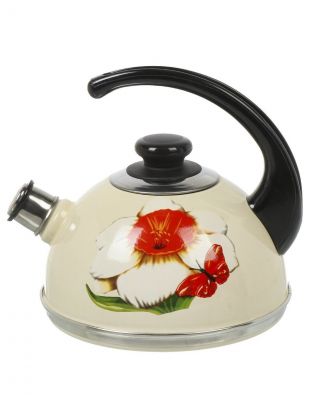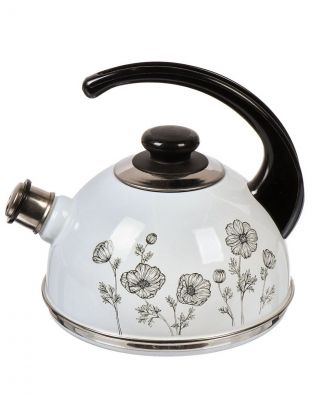 Чайник эмалированный стальной 2.5 л со свистком Ruby Маковый цветок — идеальное решение для кухни: стиль, долговечность и безопасность в одном товаре.
