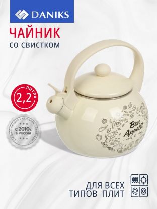 Чем отличается этот чайник от аналогов? В отличие от моделей с полированным или алюминиевым корпусом, сталь с эмалью не окисляется, а консольная термоизолированная ручка не нагревается, что повышает безопасность. Для каких плит подходит данный чайник: для газовых, электрических и стеклокерамических (не для индукции). Как использовать чайник со свистком? Просто наполните водой, поставьте на плиту — свисток подаст сигнал, когда вода закипит.