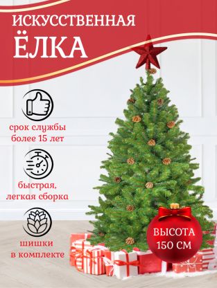 Премиальный внешний вид: густая хвоя ПВХ, натуральные шишки, классическая форма, эффект настоящей ели