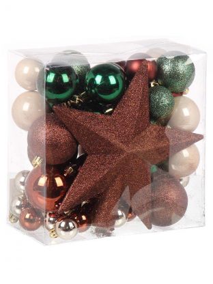 Елочный шар 51 шт, шампань, кофе, зеленый, пластик, верхушка звезда, SYQB- 0124199
