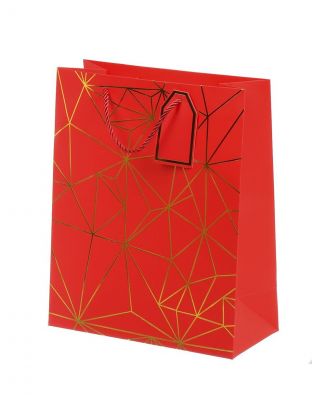 Подарочный пакет из бумаги с геометрическим дизайном — идеальное решение для стильного оформления подарков. Универсальные размеры 26х12х32 см позволяют использовать его для самых разнообразных презентов.