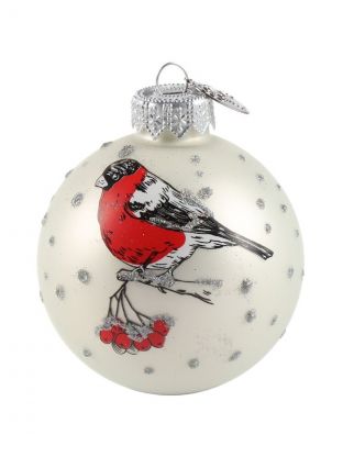 Елочный шар "Веселый снегирь-3" 6,5 см — стильный акцент для новогодней ёлки или оригинальный подарок: стекло, ручная роспись, подарочная упаковка.