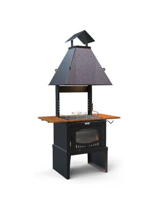 Отличный гриль-мангал для семейных посиделок. Топка с декоративной накладкой из нержавеющей стали и выдвижным зольником для регулировки интенсивности жара.