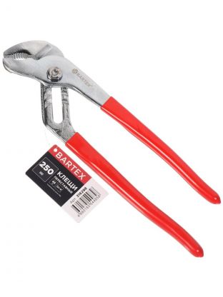 Клещи переставные Bartex предназначены для захвата разнообразных по форме и размерам предметов, могут использоваться в качестве трубного или разводного ключа. Имеют острую насечку на губках, обеспечивающую захват предметов, которые не имеют специальных рабочих поверхностей.