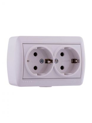 Розетка открытой установки, 2 гнезда, с заземлением, керамика, белая, закрытый корпус, Lezard, Nata, 710-0200-127