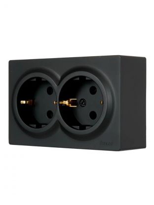 Розетка открытой установки, 2 гнезда, с заземлением, 16 А, 220 В, пластик, IP20, черная, закрытый корпус, Lezard, Leto, 752-4200-127B