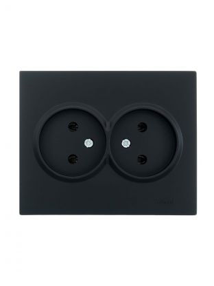 Розетка 2 гнезда, с заземлением, 16 А, 220 В, пластик, IP20, черный бархат, ПБТ, Lezard, Vesna, 742-4200-127B