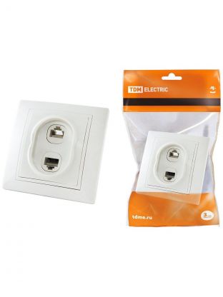 Розетка телефонная + компьютерная скрытой установки, без заземления, белая, TDM Electric, Таймыр RJ11+RJ45, SQ1814-0023