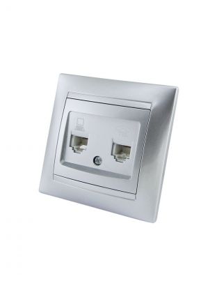 Розетка телефонная + компьютерная скрытой установки, без заземления, серебряный металлик, TDM Electric, Лама RJ11+RJ45, SQ1815-0219