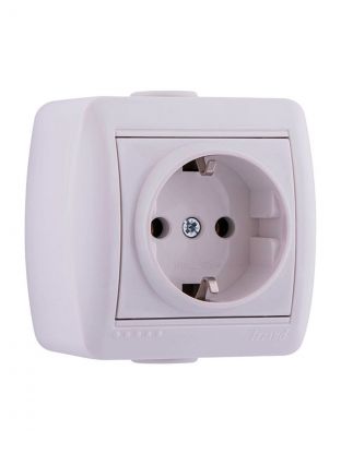 Розетка открытой установки, 1 гнездо, с заземлением, пластик, белая, Lezard, Nata, 710-0200-122